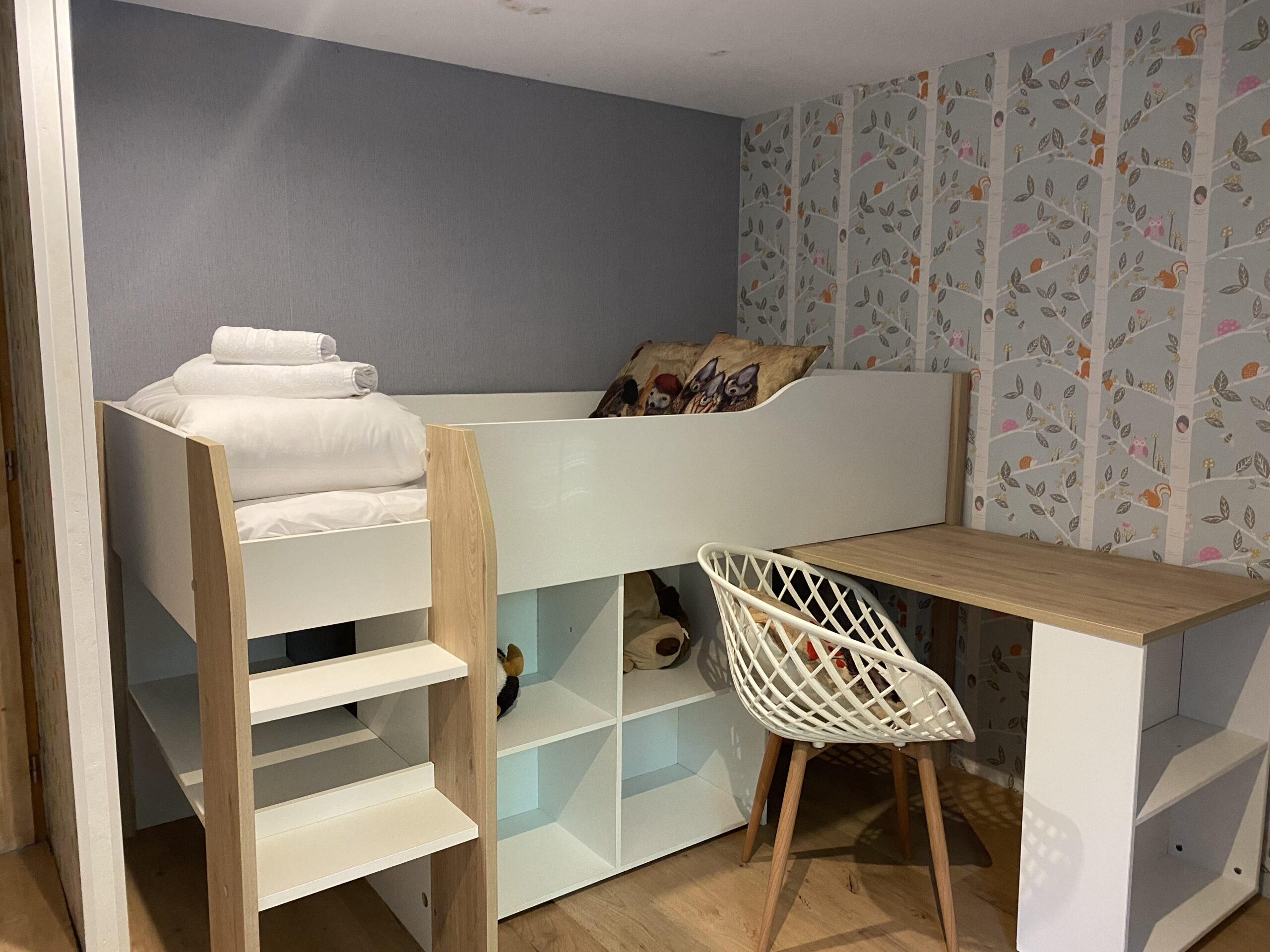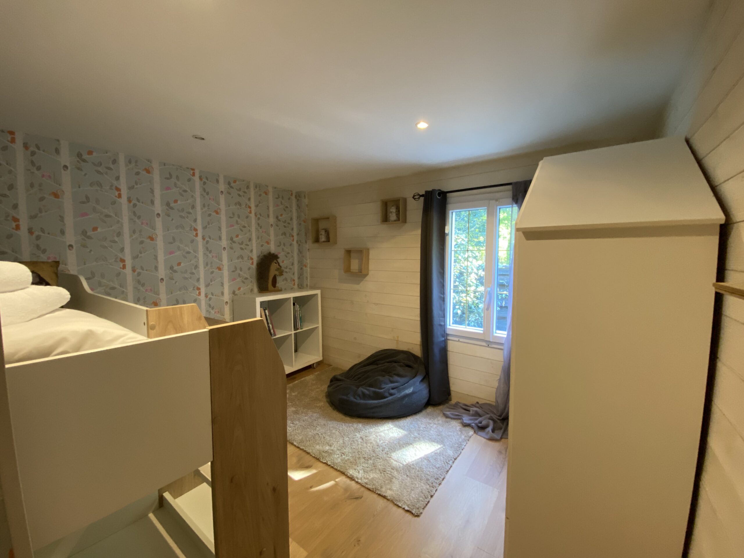 – Une chambre enfant équipée d’un lit de 90 en hauteur.